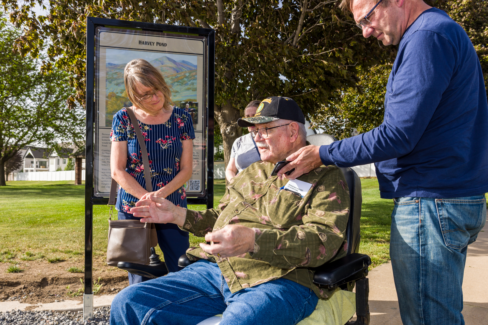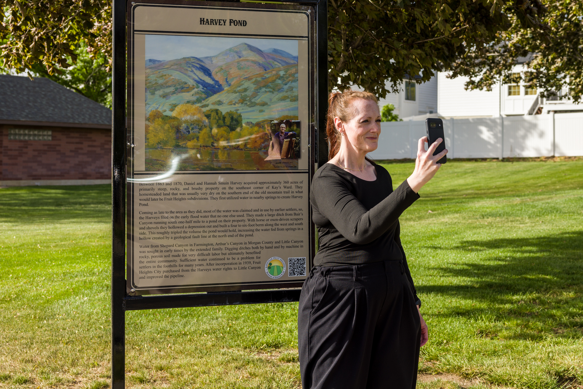 Nine historical markers were revealed May 12, 2025 to the public by the Kaysville – Fruit Heights Museum of History and Art. The markers, mounted on six different signposts, were placed in Fruit Heights and Kaysville with the cooperation and assistance of city employees. Members of the extended families named on the markers were invited to be onsite with city leaders, community, and board members to unveil the historical markers. The “Historical Marker Project” encourages walkers, runners, cyclists, and outdoor enthusiasts who might not otherwise engage with local history to access compelling stories in a non-traditional setting.  Families visiting local parks can also learn about our local history.