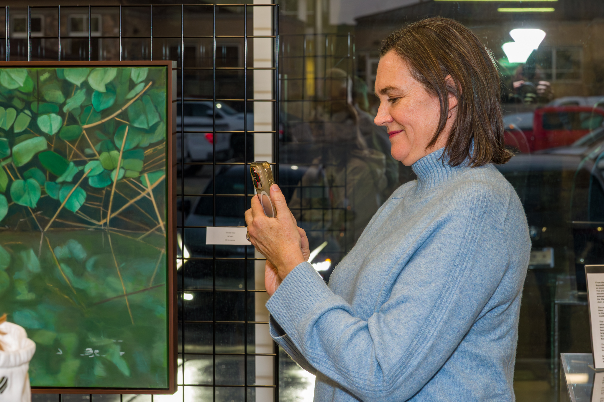 The main body of paintings are intimate studies of water, reflections and plant life. They invite viewers to slow down, look closely, and consider the fragile ecosystems that sustain life. The surfaces of water become mirrors—reflecting not only the sky above, but our choices, our stewardship, and our hopes for the next 250 years of American life. Her work reminds us that celebrating America includes caring for the land that sustains us.