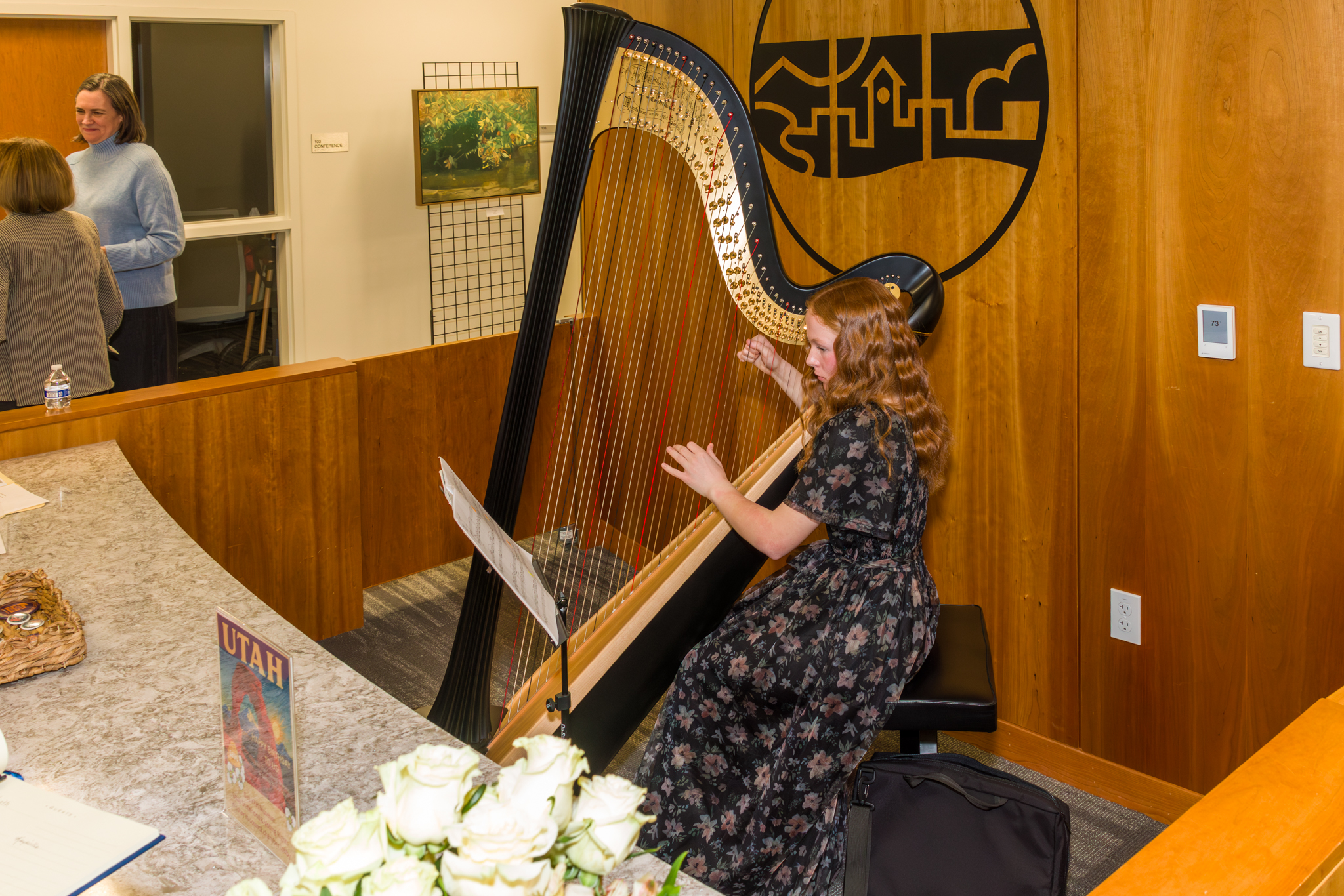 time. The evening was filled with warm reunions and the elegant sound of live harp music, creating a welcoming and memorable atmosphere. Borup’s artwork will remain on display through March 31, 2026, in the north foyer of Kaysville City Hall.