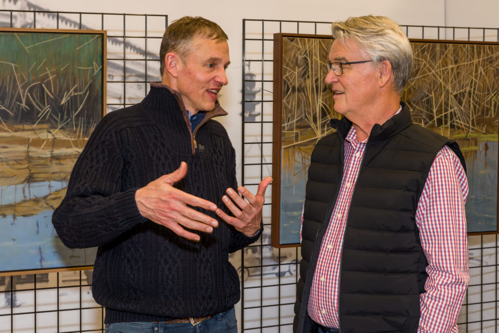 Viewing the show invites one into the contemplative world of Borup whose paintings explore the beauty and vulnerability of the Western landscape. Many of Borup’s pieces focus on water—its beauty, its symbolism, and its increasing scarcity in the American West. The first three pieces are of pastel chalk that capture the open spaces reminiscent of the agricultural spaces of its past.